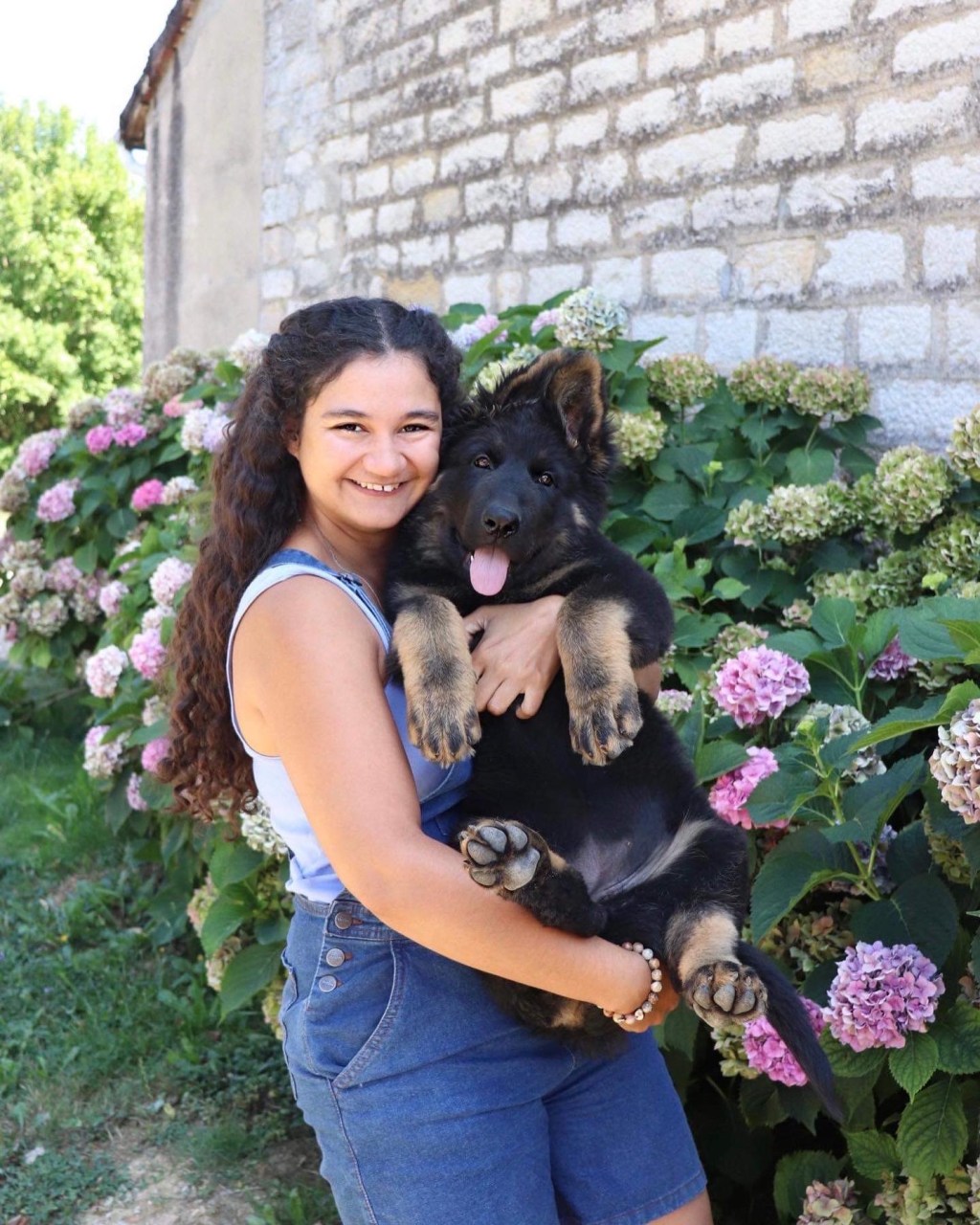 Parfois très tête en l’air, un peu dans la lune mais on lui pardonne tout avec son petit regard d’amour.